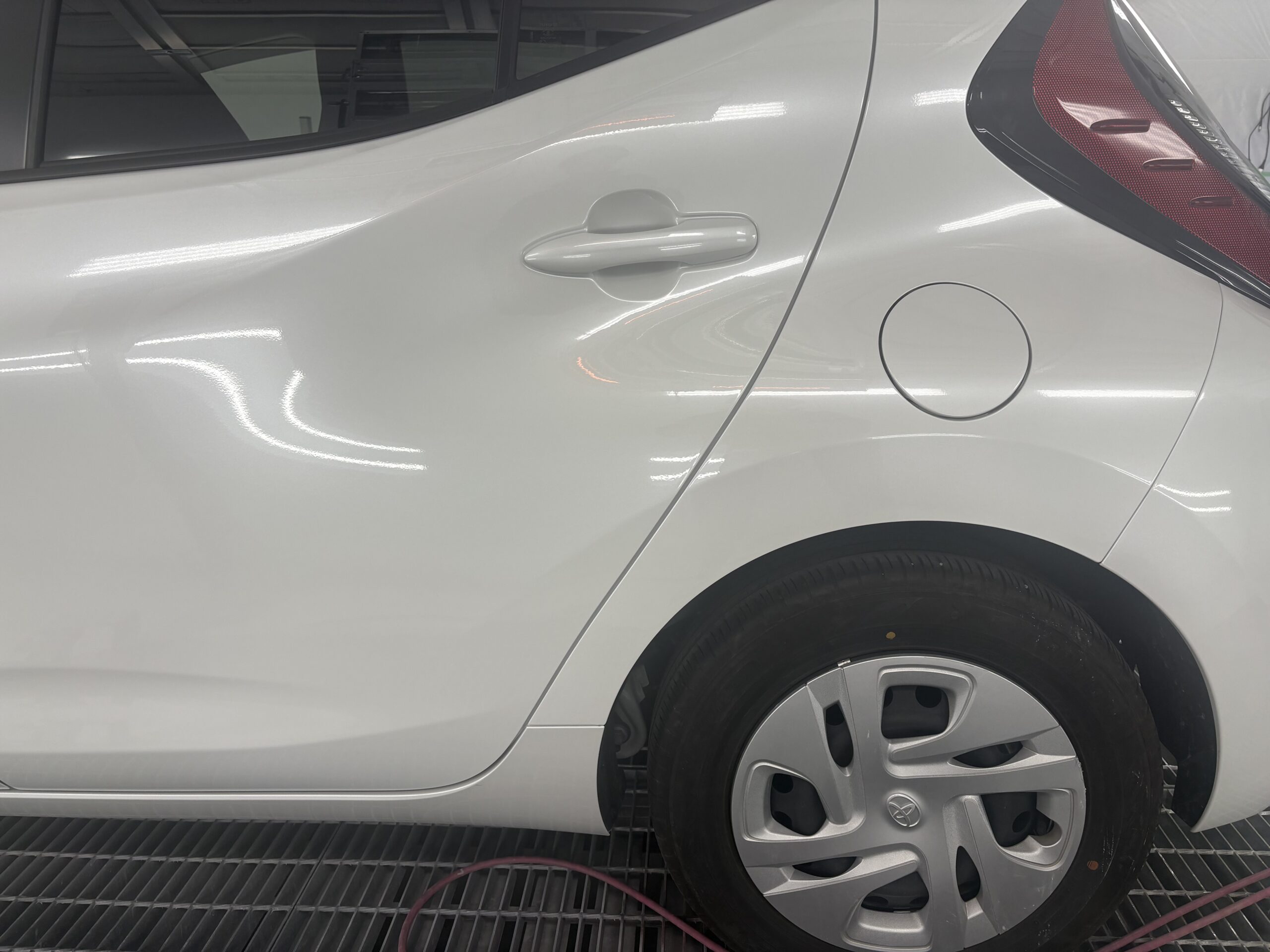 現場仕事をしていて材料を運ぶ際に、、、材料を思いっきり擦ってしまった、、、と御入庫頂いたのはトヨタ アクアです😢!!